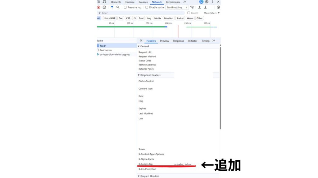 Response Headersに「X-Robots-Tag: noindex, follow」が表示されていれば設定完了