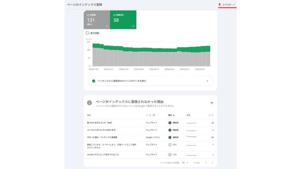 - サーチコンソールで「インデックス未登録」の件数を確認する