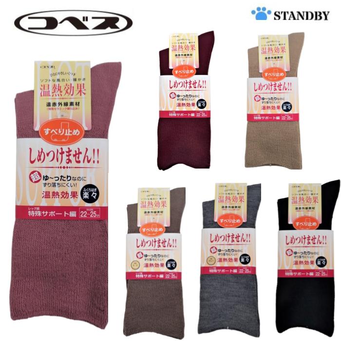 [コベス] しめつけません すべり止め 婦人 ソックス 22-25cm 毛混 秋冬向き 温熱 3907 むくみ対応 日本製 1足