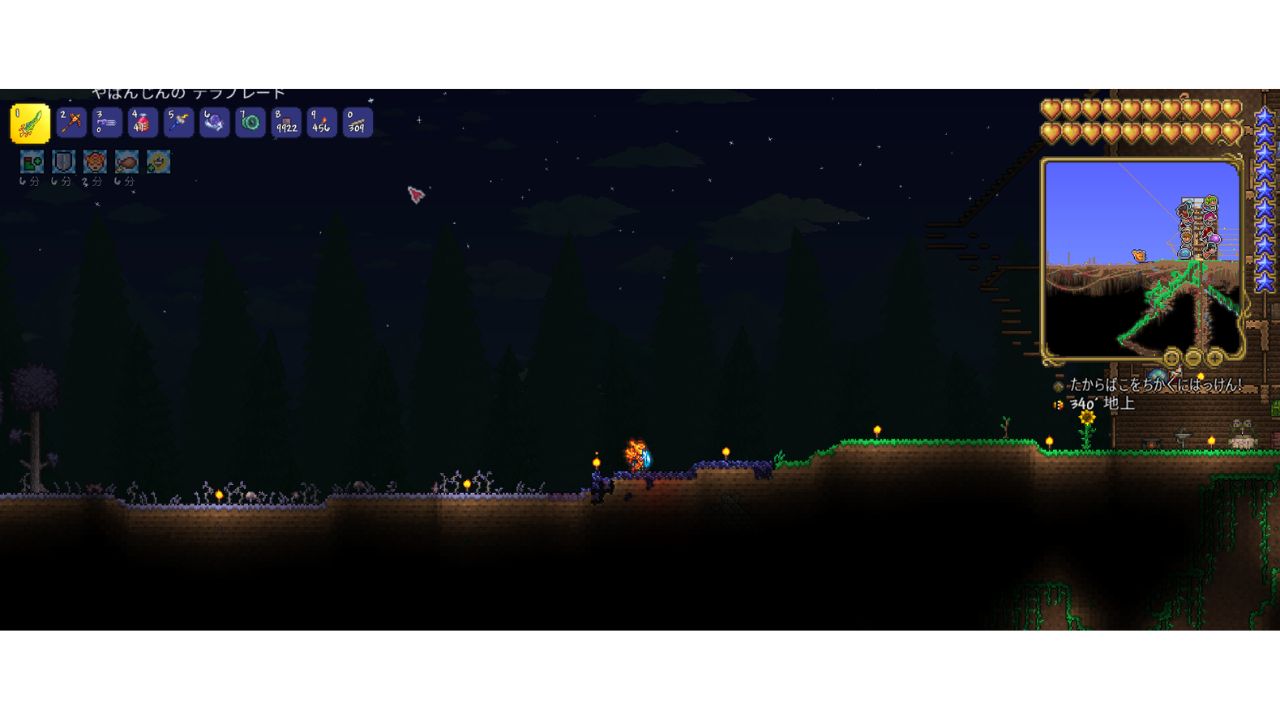 テラリアの基本的な楽しさは「探索→素材集め→装備づくり→ボス挑戦」のサイクルにあります。マップを探索して素材を集め、装備を整えてからボスに挑みます。きちんと準備してボスを倒せたときの達成感がたまりません。難しかったポイント
